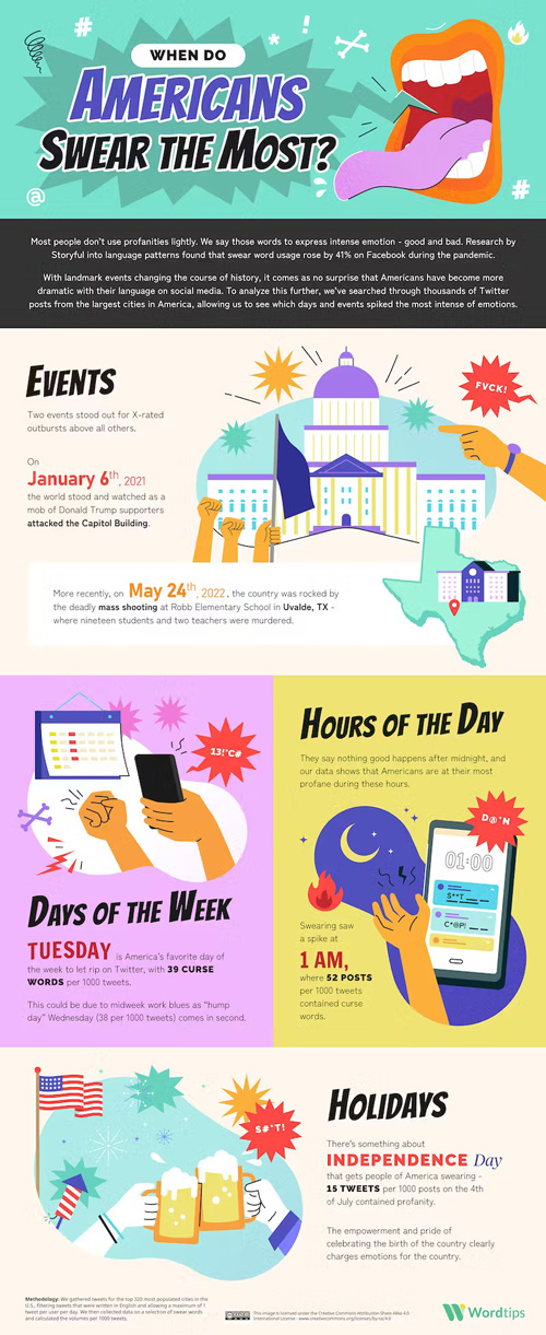 It is no secret that Americans are known for swearing a lot. Have you ever wondered when they do i the most? This infographic from Word.Tips takes a look: