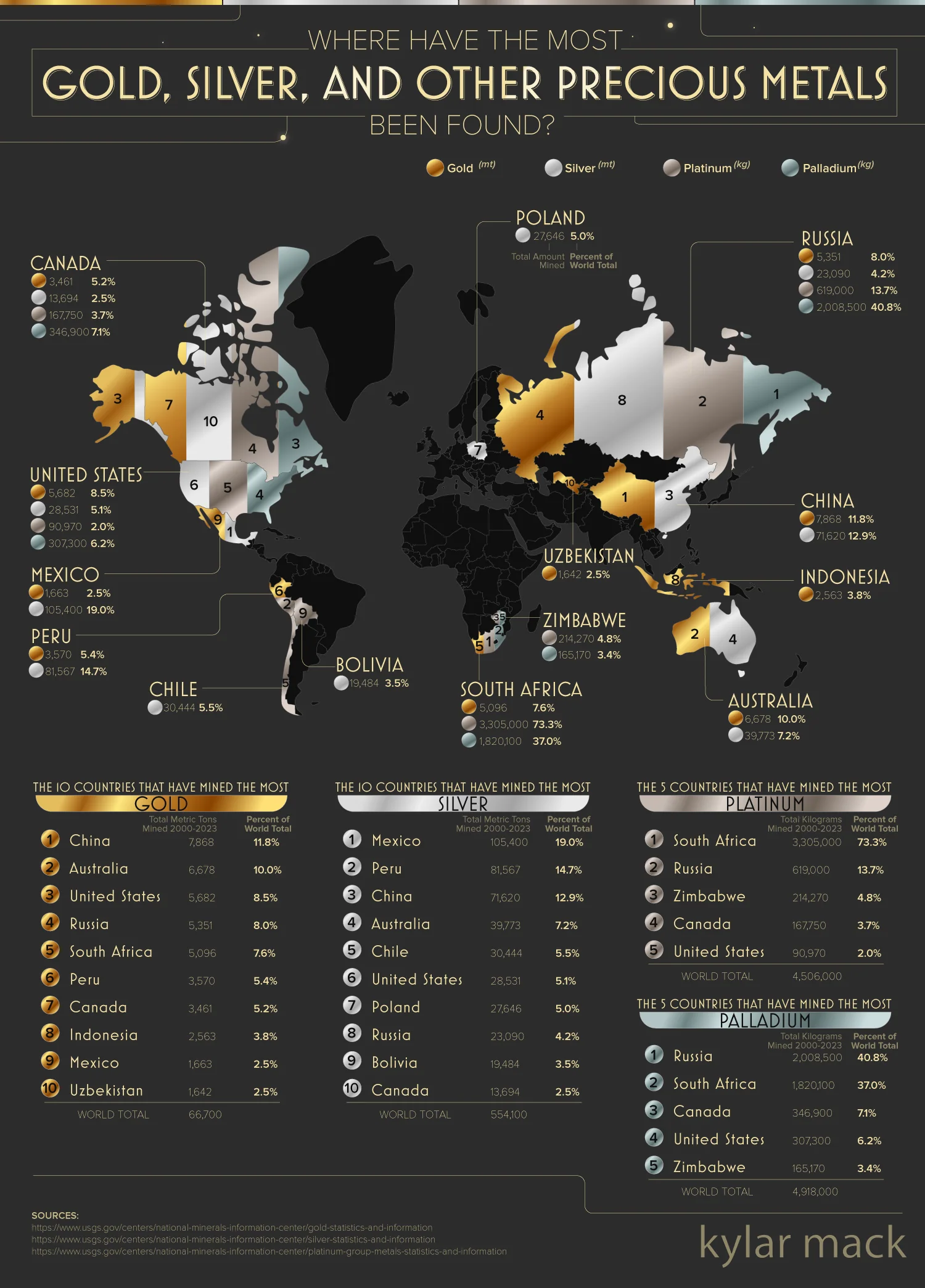 Plenty of people invest in gold and silver as as form of investment. Have you ever wondered where most of these gold and silver metals have been found? This infographic from Kylar Mack takes a look: