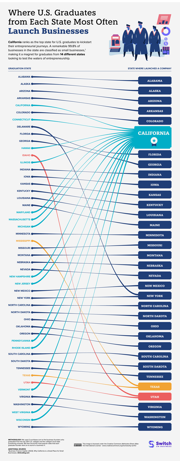 Where US Graduates from Each State Most Often Launch Businesses [Infographic]