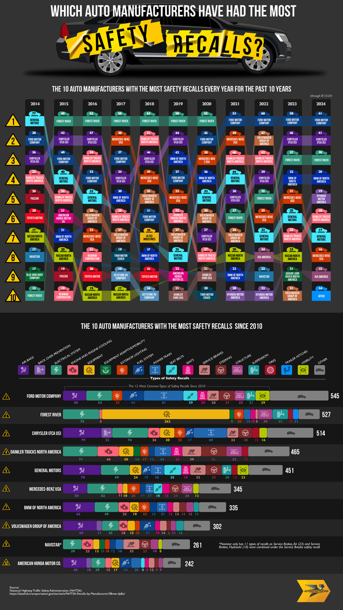 Which Auto Manufacturers Have Had the Most Safety Recalls?
