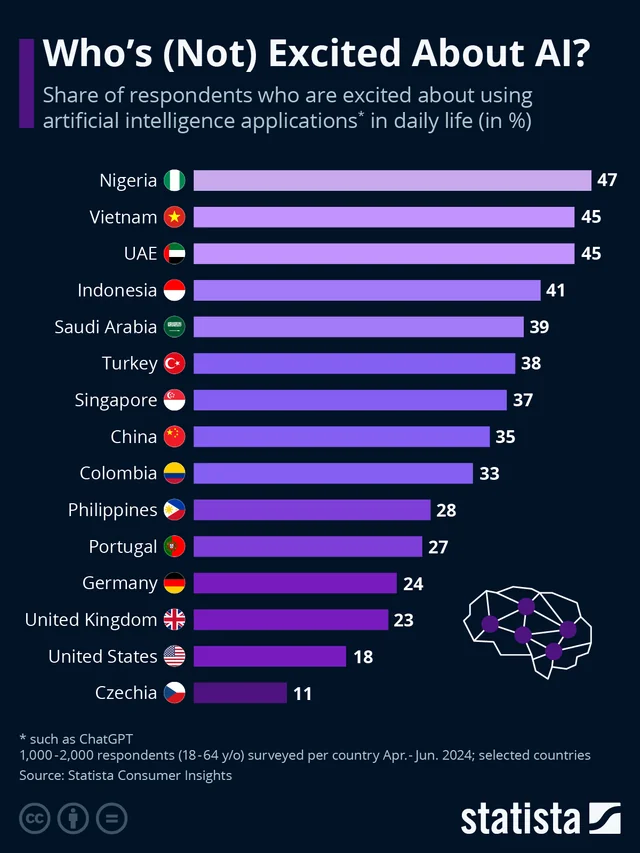 Many of us are excited about AI tools, whether it is ChatGPT, Midjourney or Runway. Not every country is as open to AI though. This infographic from Statista takes a look: