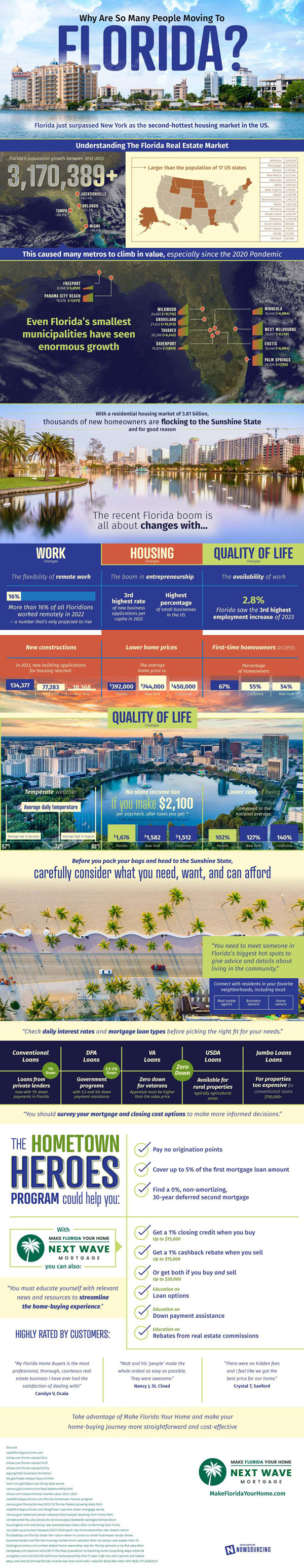 We have all heard stories about people moving to Florida from New York, California, and other states. Florida has one of the hottest housing markets in the US. This infographic from Make Florida Your Home covers reasons people are moving to this state: