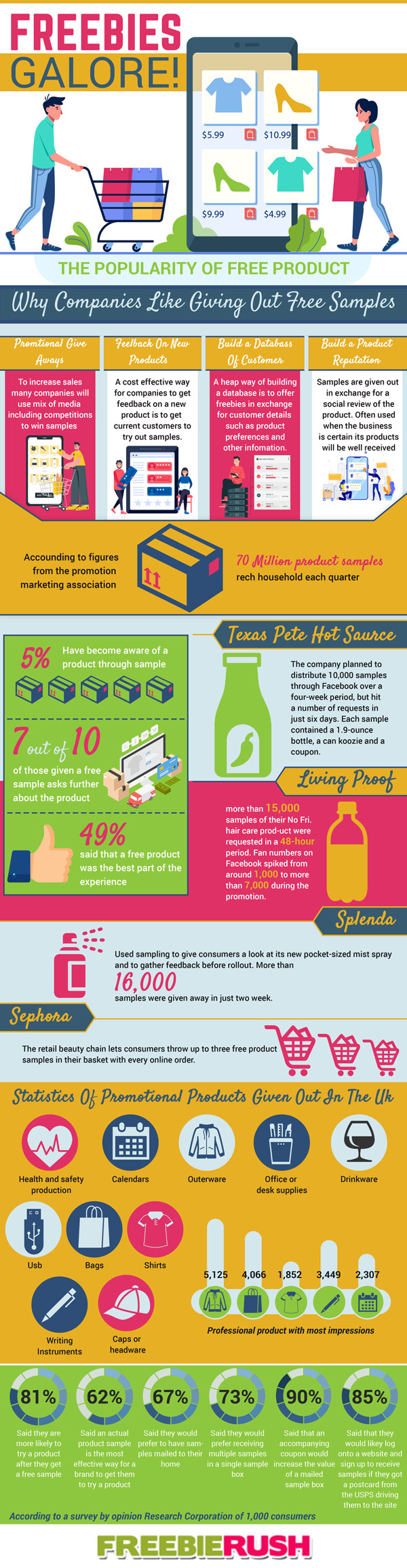 Many people are taking advantage of freebies offered by all kinds of companies these days. The practice is way more common than most assume. Businesses give away free stuff to increase their client base, build brand awareness, and collect actionable data from potential customers. This infographic from Freebie Rush takes a look at reasons businesses give away free stuff: